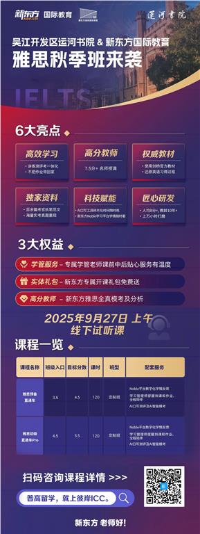 吴江开发区运河书院 & 新东方国际教育:雅思秋季班来袭!