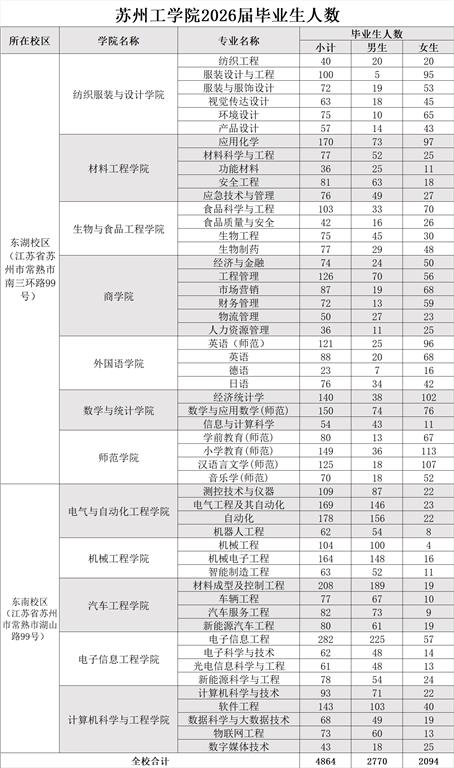本次招聘会预设展位150个,主办方为每个参会单位提供展位一个(一桌两椅),不收取任何参会费用,企业需自带宣传材料,建议使用易拉宝(大小控制在80*200cm以内)。招聘会当天开放东南校区九章楼部分多媒体教室用于宣讲和面试,如有需要,请提前联系就业指导中心预定(顾老师,0512-52251232)。东南校区分布学院:机械工程学院、电气与自动化工程学院、电子信息工程学院、汽车工程学院、计算机科学与工程学院。东湖校区分布学院:材料工程学院、生物与食品工程学院、商学院、纺织服装与设计学院、外国语学院、数学与统计学院、师范学院。详见《苏州工学院2026届毕业生选聘指南》。